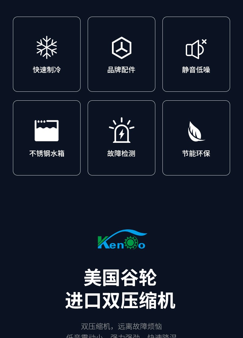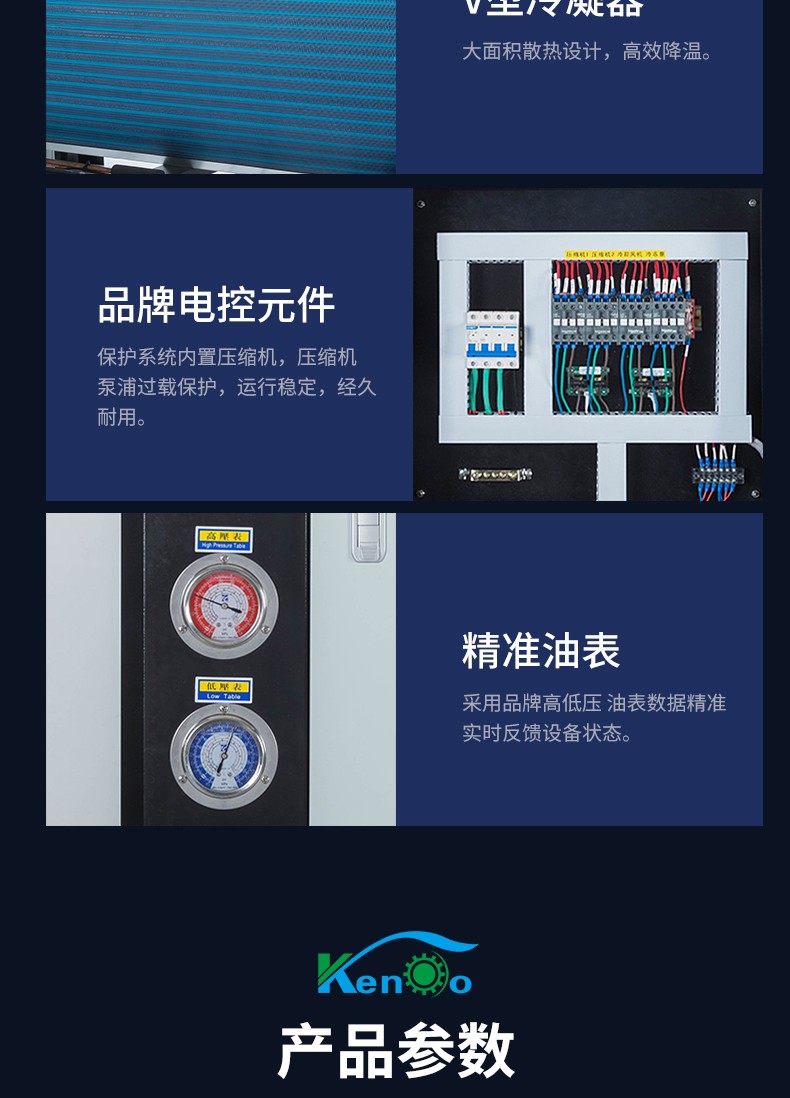 風冷式冷水式KD-5AS 風冷式冷水式KD-5AS 選用松下壓縮機 | 振動小,機器經久耐用 在制冷系統里,在區間內,壓縮機振動頻率越低,則噪音越低、對設備磨損越少,設備故障概率越低,制冷效率... 在線咨詢